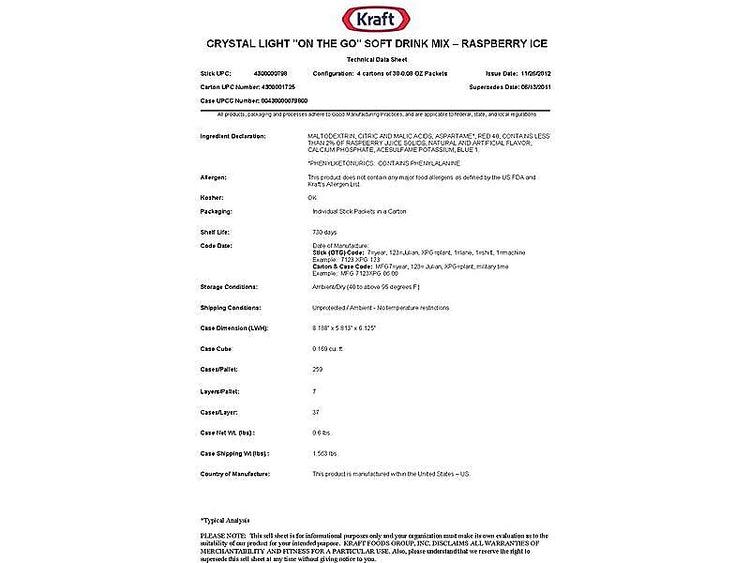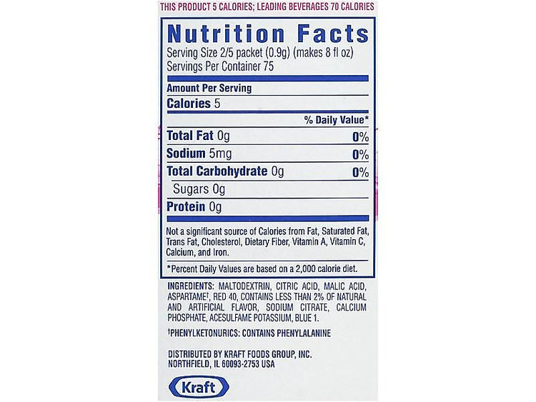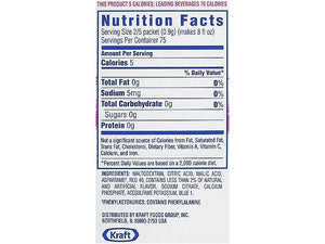 Boost interest in proper hydration with this powdered drink mix. The raspberry flavor creates a satisfying addition to bottled water, and the minimal calories ensure you can enjoy it guilt-free. The individually sealed packets of this Crystal Light powdered drink mix make it easy to store hygienically in break rooms and desks.