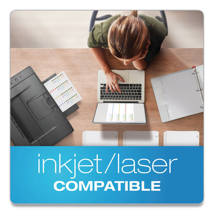 Oxford® Customizable Label Tab Dividers help you create personalized binder dividers instantly. Label sheets are laser and inkjet compatible. Simply print, peel and paste. Heavyweight white stock is reinforced at the edges for durability. Fits standard three-ring binders.