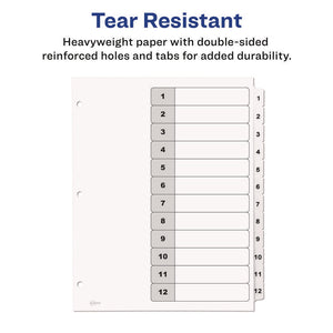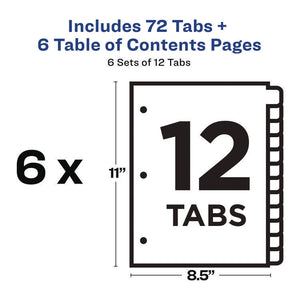 Customizable Table of Contents Ready Index Black and White Dividers, 12-Tab, 1 to 12, 11 x 8.5, White, 6 Sets