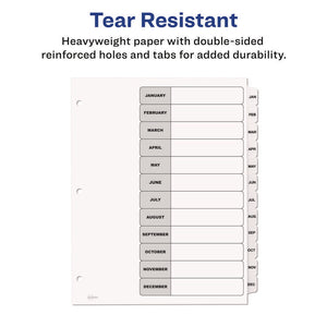 Customizable Table of Contents Ready Index Black and White Dividers, 12-Tab, Jan. to Dec., 11 x 8.5, White, 6 Sets