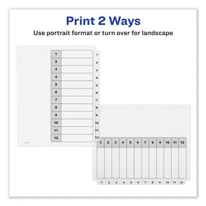 Customizable TOC Ready Index Black and White Dividers, 12-Tab, 1 to 12, 11 x 8.5, 1 Set