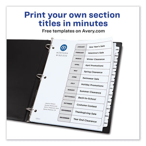 Customizable TOC Ready Index Black and White Dividers, 12-Tab, Jan. to Dec., 11 x 8.5, 1 Set