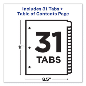 Customizable TOC Ready Index Black and White Dividers, 31-Tab, 1 to 31, 11 x 8.5, 1 Set