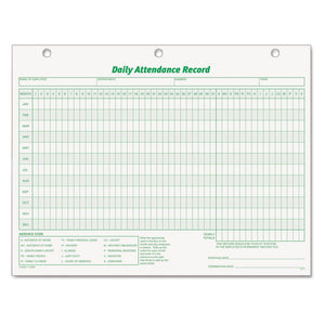 Record one year of attendance for an employee. Three-hole punched at top for use in a ring binder. White index printed in green ink.
