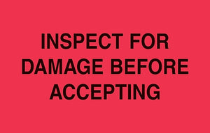 Decker Label "Inspect For Damage Before Accepting" Labels, 3" x 5", Fluorescent Red (DL2446C)