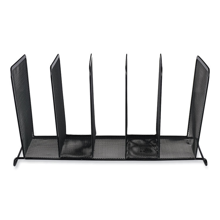 Five sections for sorting file folders, books, papers, and more. Helps organize desk clutter. Mesh contemporary design looks distinctive and is appropriate with any decor.