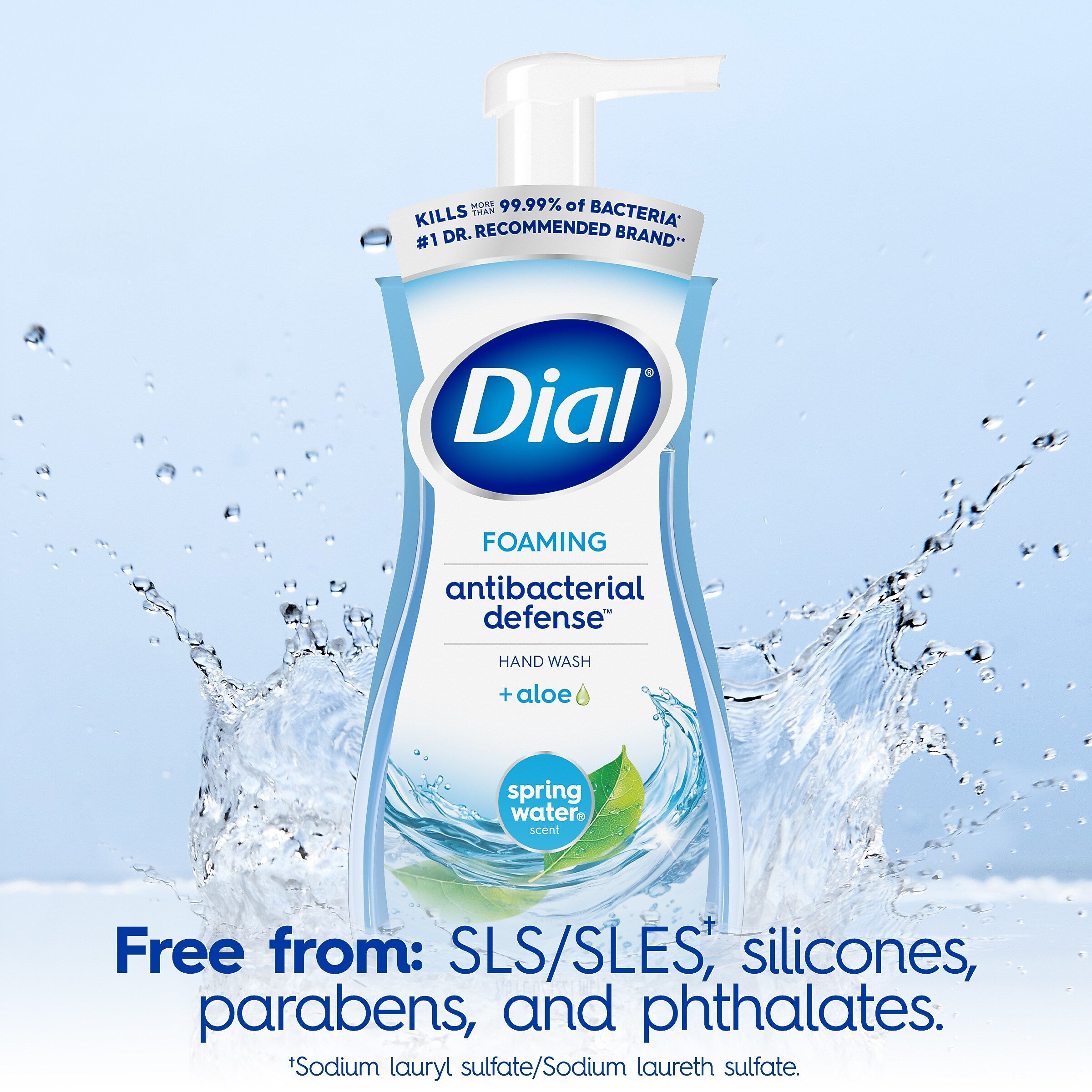 Enjoy the fresh scent of the Dial Antibacterial Defense Spring Water foaming hand wash. The formula contains aloe vera and kills more than 99.99% of bacteria while being gentle on skin, leaving it feeling soft, smooth, and healthy. Dermatologist-tested and approved as cruelty-free under the Leaping Bunny program.