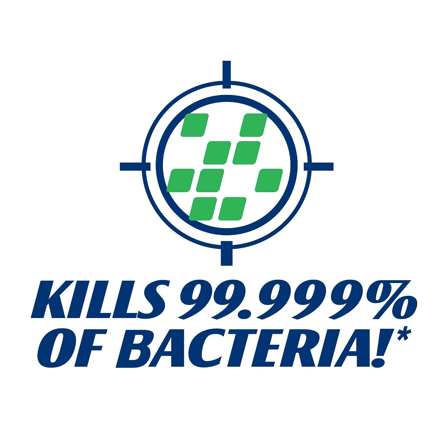 - Kills 99.999% of bacteria encountered in away-from-home settings without soap and water in as little as 15 seconds