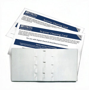 Digital Check Scanner Cleaning Cards are made exclusively for cleaning performance-critical surfaces inside most DCC Check Scanner devices. These cards feature Waffletechnology – designed to clean successfully as it transports through the paper path cleaning the sensitive Magnetic Heads, Lens, Transport Rollers in your check scanner. These cards are also pre-saturated with WonderSolvent™, an eco-friendly cleaning solution, to remove all dirt, ink, dust and skin oils from the optical lens and other interior components. This Waffletechnology cleaning card is approved and recommended by Digital Check as the preventative cleaning solution to increase transaction efficiencies and maintain reliable device performance. Using this safe and effective product will help improve image quality and avoid annoying misreads, paper jams, and bad scans