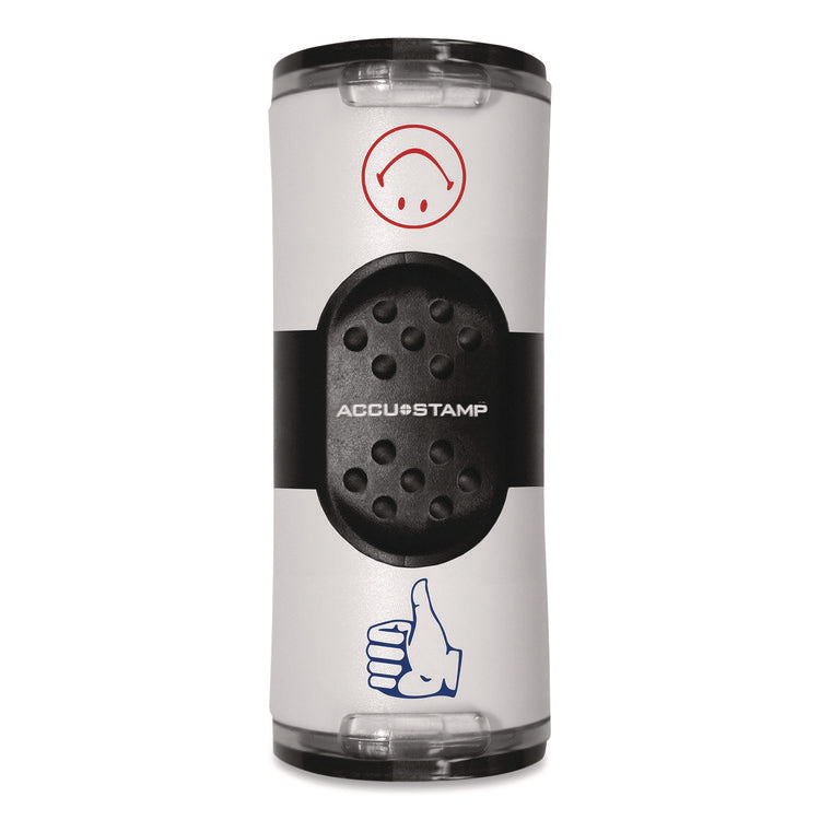 Dual Message Pre-Inked Round Stamp, Smiley Face/Thumbs-Up, 0.63" dia, Red/Blue