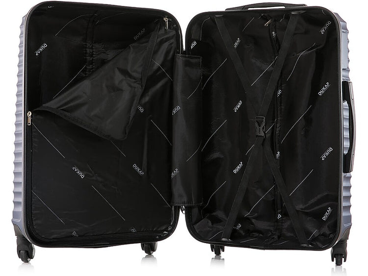 The DUKAP ADLY hardside spinner three-piece luggage set offers lightweight, durable, and water-/scratch-resistant luggage for easy and comfortable travel. Featuring a push-button locking trolley system, four silent spinner wheels, and interior zippered compartments with elastic cross straps, this set is perfect for any trip. Designed for the modern traveler, this timeless piece is built to last, lightweight yet strong enough to withstand tough travel conditions.