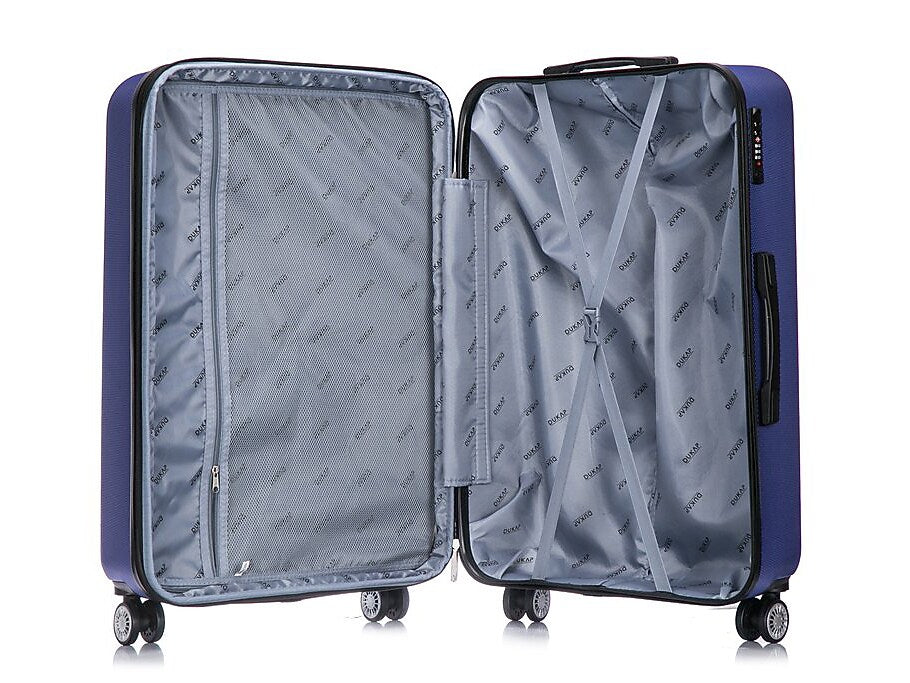 Lightweight PC/ABS engineered material with a micro diamond finish. The hard-flex construction offers maximum strength, durability, and a water-/scratch-resistant finish. The DUKAP CRYPTO suitcase expands 2'' for additional extra space. Four dual spinner 360-degree silent wheels allow for effortless mobility. It features the built-in three-digit TSA-approved combination lock ad full interior fabric lining with a zipper compartment on one side and snap-on straps on the opposite side for easy packing, plus one inside pocket. It comes with top and side ergonomic gel handles for comfortable and easy lifting, four side studs that allow the luggage to stand upright, and push-button locking internal retractable trolley system. Smooth-gliding oversized zippers ensure your convenience.