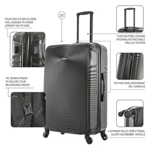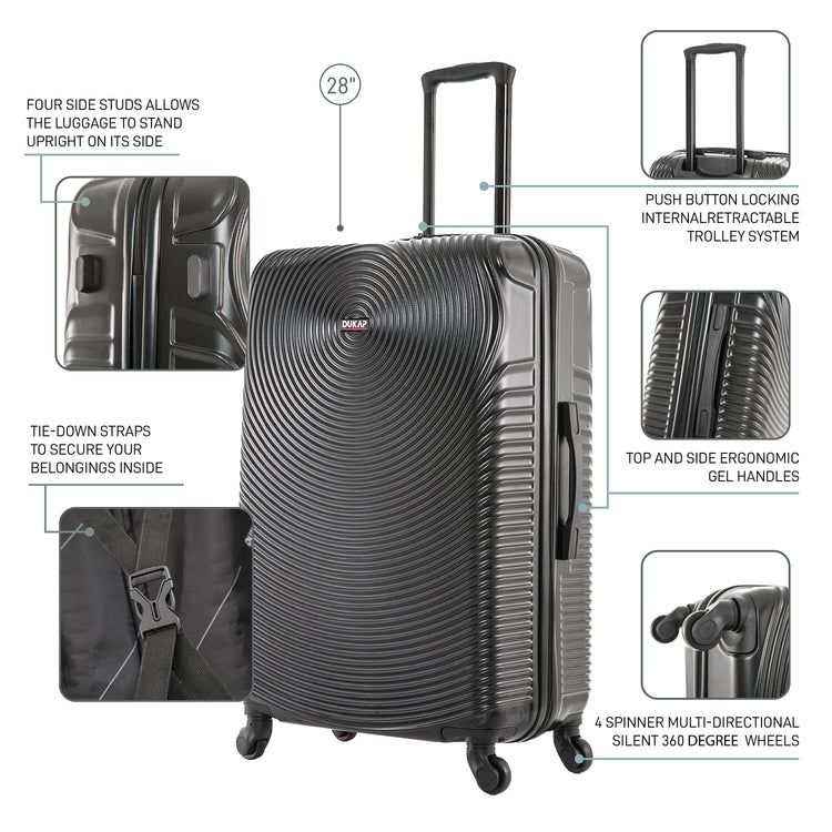 DUKAP INCEPTION 3-Piece Hardside Spinner Carry-On Luggage Set, TSA Checkpoint Friendly, Black (DKINCSML-BLK)