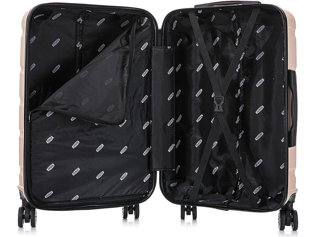 - Offers full interior fabric lining with a zippered compartment on one side and snap-on elastic cross straps on the other for easy packing
