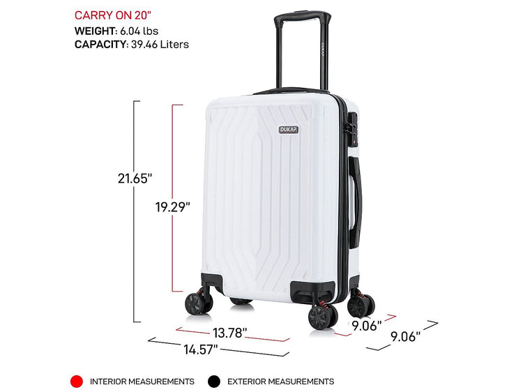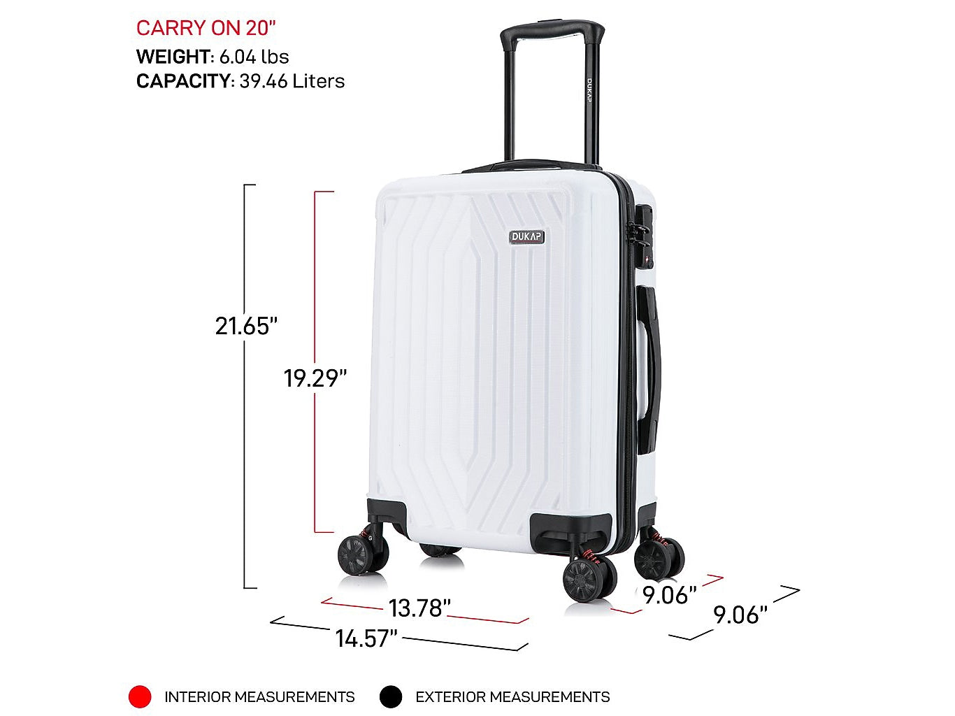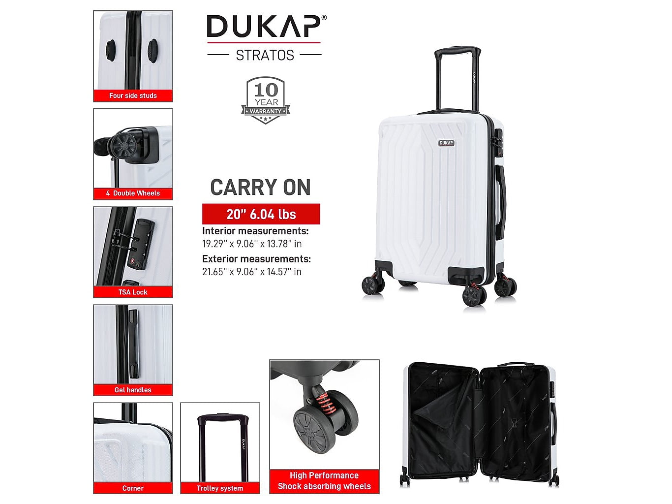 DUKAP Stratos 21.65" Hardside Carry-On Suitcase, 4-Wheeled Spinner, TSA Checkpoint Friendly, White (DKSTR00S-WHI)