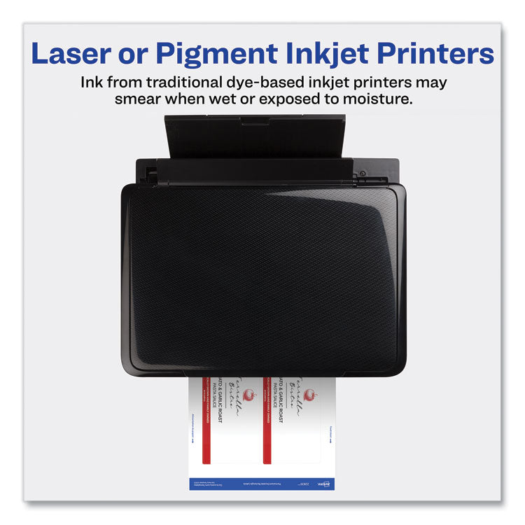 Showcase your brand with these versatile wraparound labels. Their water-resistant material and permanent adhesive make them perfect for branding water bottles. They're also ideal for use on products, packaging, marketing materials and more to make your brand or logo really stand out in the crowd. They stick to glass, plastic, paper and other materials, so you can put your mark on nearly any product. Our Print-to-the-Edge feature lets you add a full-color background and with free templates from Avery® Design & Print, you can easily customize the labels with your branding in mind. Brand your business with these unique labels. Print-to-the-Edge of the label for a custom look.