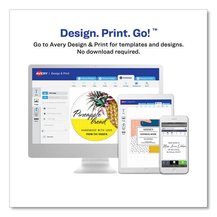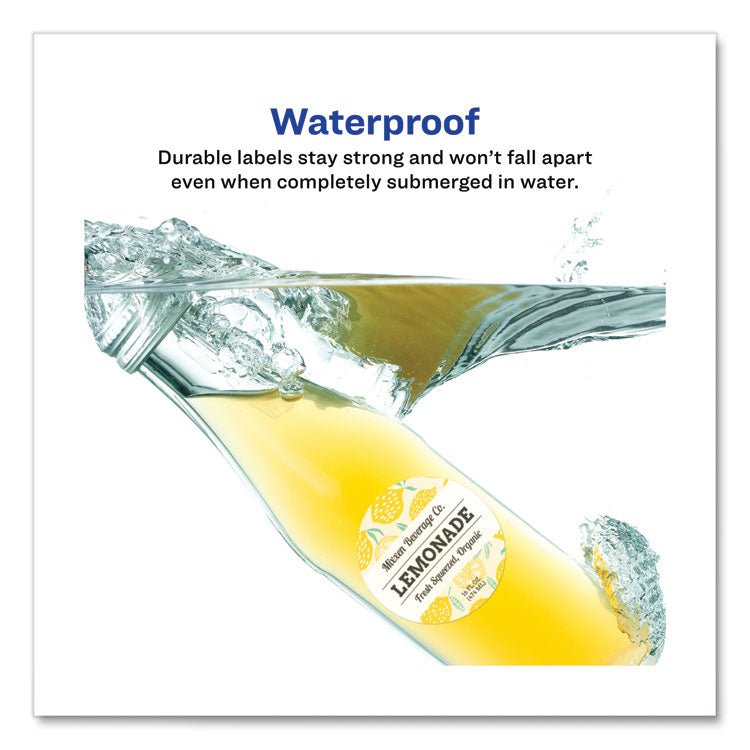These labels let you take your branding message outdoors. They’re specially made of a sturdy polyester material that holds up to moisture, scuffing and tearing. Perfect for identifying contents of containers at outdoor events, refrigerated products, plants and more — just customize, peel and stick. Our print-to-the-edge feature lets you add a full-color background to make your label really pop. With a few quick steps you can easily personalize them with your logo, product information or QR code. Print-to-the-edge feature lets you add bright, bold colors and text all the way to the edge of the label. Compatible with both laser and inkjet printers.