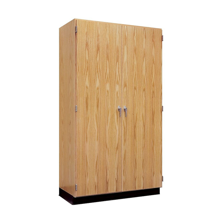 Diversified Woodcrafts Wall Storage Case is a standard storage cabinet made with solid oak for long life and durability. It provides ample space for storage, featuring two doors with three-point locking system, two fixed and four adjustable shelves.