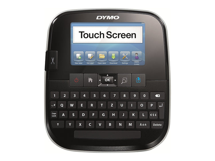 Use touch controls to create and format logos and barcodes with this touchscreen label maker. Featuring a full keyboard and an intuitive touch interface, this device makes designing and editing labels easy and helps save time by storing and providing access to up to 500 frequently-used templates. This Dymo LabelManager label maker delivers clear, easily legible text and smudge-free graphics with a print resolution of up to 300 dpi.