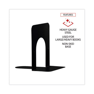 Economy Bookends, Nonskid, 4.75 x 5.25 x 5, Heavy Gauge Steel, Black, 1 Pair