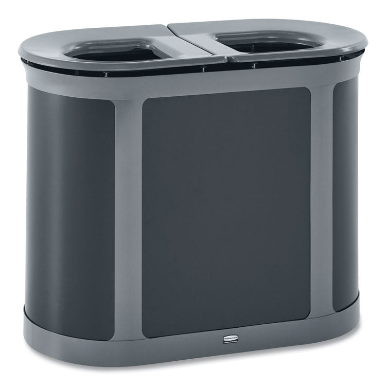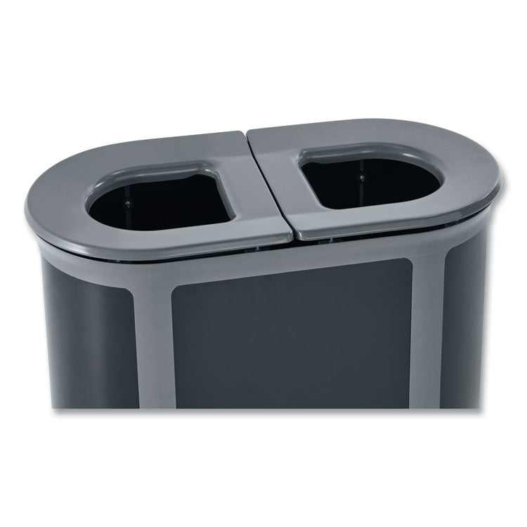 ENHANCE PILL Dual Stream Waste Receptacle, (2) 23 gal Capacity Bins, Metal, Umbra Gray/Pearl Gray