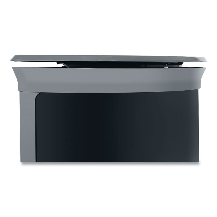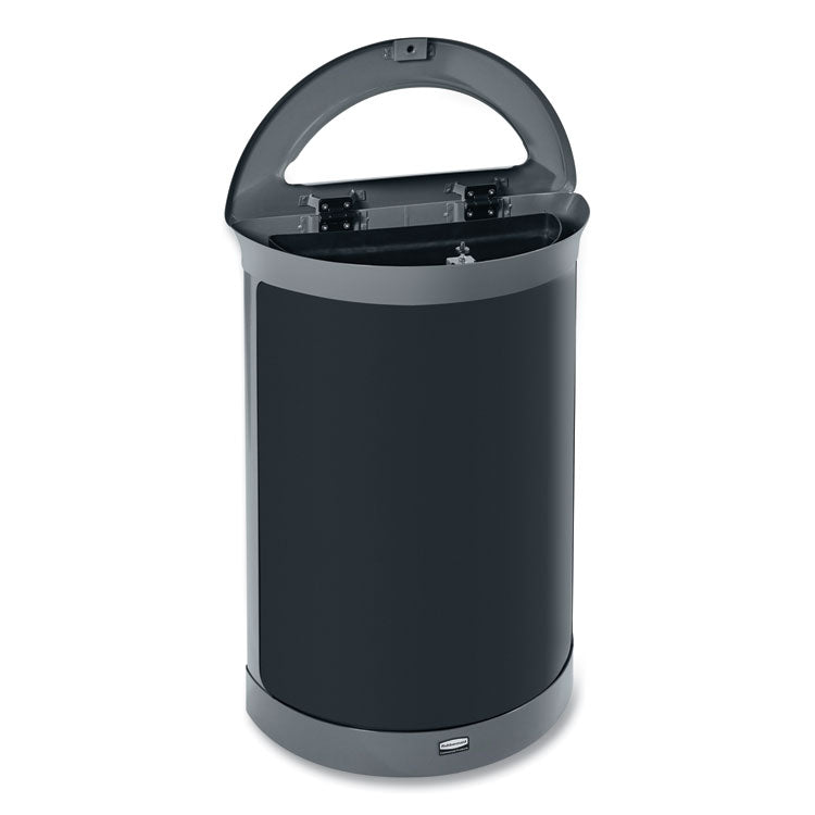 - An internal hinged lid design delivers visual consistency and quick waste removal.
