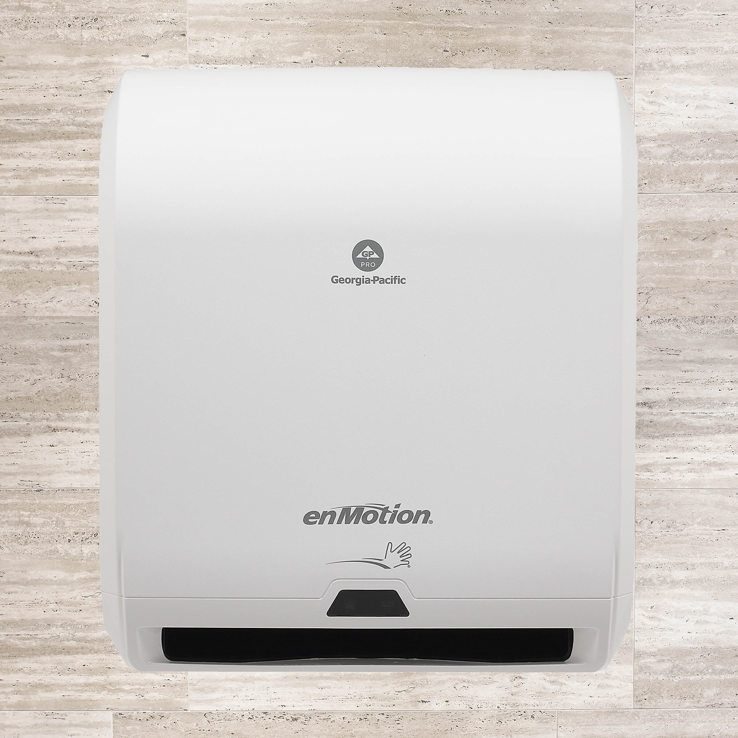 enMotion® paper towel systems combine touchless operation with jam-free performance for state-of-the-art dispensing. Whisper Quiet™ dispensing and sleek design provide a premium experience, while easy customizable settings, including delay, sheet length and dispense mode, let you program the dispensers to meet your unique needs, helping reduce waste. One set of batteries dispenses up to 200 rolls, helping reduce the need for maintenance. Designed for use in offices, healthcare, industrial and higher educational facilities, enMotion® products deliver 97% customer satisfaction, thanks to their dependability, hygiene and efficiency. GP PRO is a division of Georgia-Pacific Consumer Products. We deliver well-designed, durable and easy-to-maintain professional solutions to meet the handwashing and cleaning needs for a range of business applications.