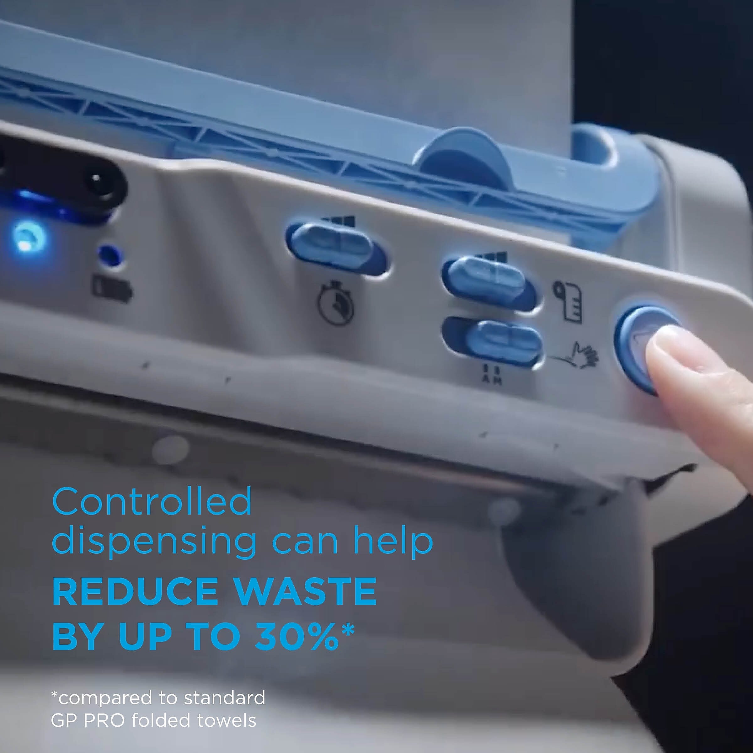 - Helps reduce waste with customizable settings including delayed dispensing, sheet length options and dispense method (hang mode vs. wave mode)