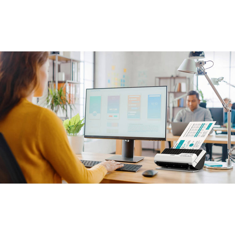 Maximize Efficiency with the Epson DS-C490 Compact Desktop Document Scanner Transform your workspace with the Epson DS-C490, the ultimate compact desktop document scanner designed for high performance and versatility. This powerful scanner offers: Compact Design: Save up to 60% of desk space with its vertical paper feed system, perfect for tight workspaces. High-Speed Scanning: Achieve fast, one-pass duplex scanning at speeds of up to 40 pages per minute (ppm) and 80 images per minute (ipm). Versatile Media Handling: Scan documents of varying sizes, from 2" x 2" to 8.5" x 220", including cards and passports. Advanced Imaging Technology: Enjoy features like automatic cropping, blank page deletion, background removal, dirt detection, and paper skew correction for superior image quality. PC-Free Scanning: With ScanWay, save directly to USB drives, email, or cloud storage services like Dropbox, Evernote, Google Drive, and OneDrive without needing a computer. Powerful Software: Utilize Epson Document Capture Pro software for seamless integration with most document management systems using TWAIN and ISIS drivers. Reliable Performance: Engineered for heavy usage with a peak daily duty cycle of up to 6,500 pages, ensuring durability and dependability. Eco-Friendly: ENERGY STAR qualified and RoHS compliant, contributing to a sustainable environment. Elevate your document management with the Epson DS-C490 and experience unmatched efficiency, reliability, and versatility. Perfect for any busy office environment!