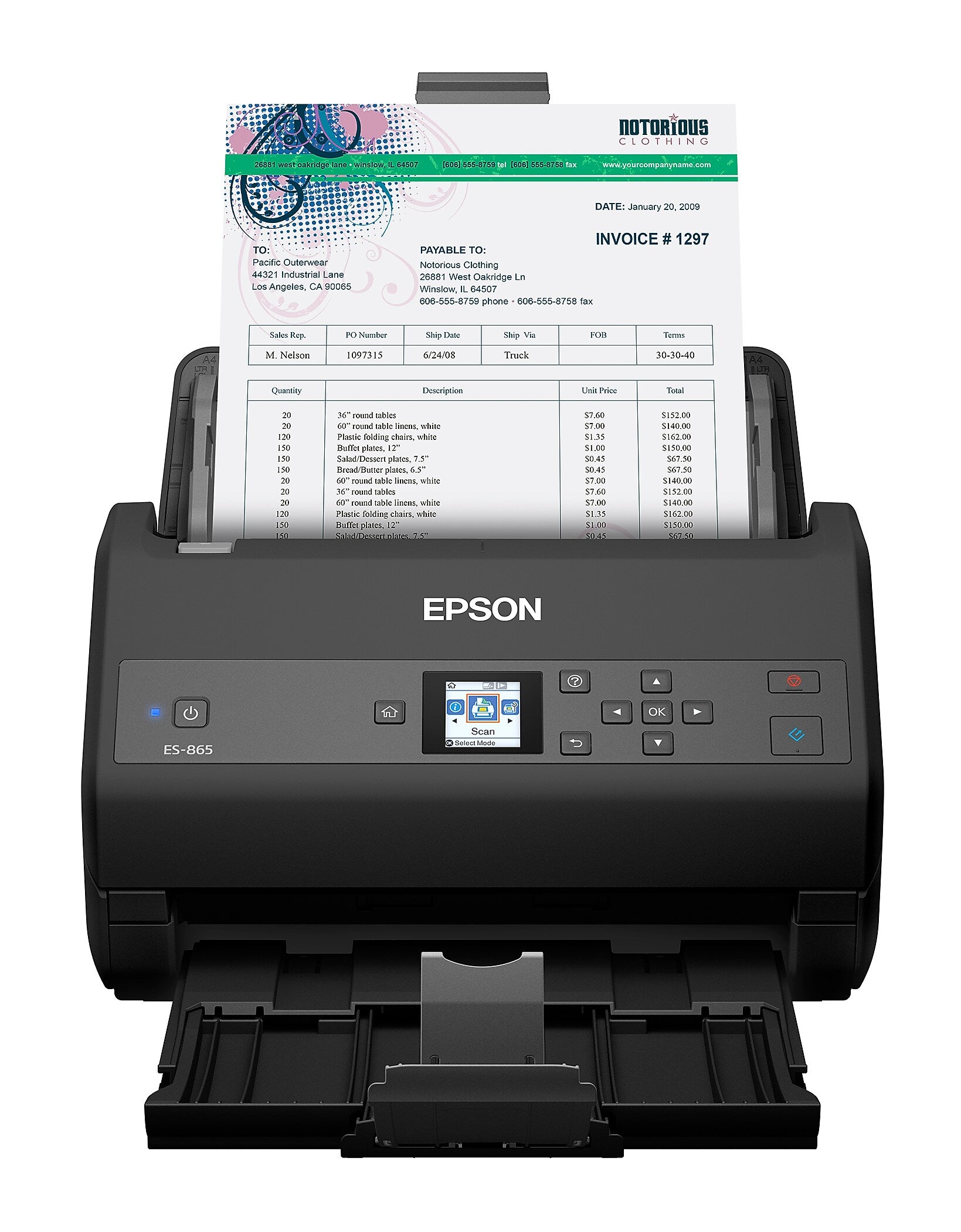 Quickly scan stacks of important documents with the fast, affordable, robust WorkForce ES-865 color document scanner. Designed for your business, the ES-865 speeds through both sides in a single pass, at up to 65 ppm/130 ipm. Included ScanSmart Software makes it easy to scan, review and save documents. You can even scan to popular cloud storage services. The included TWAIN driver ensures seamless integration with a wide range of software. Plus, there’s even an option to upgrade to the Accounting Edition, which enables you to organize and export receipts into your existing accounting software. PC and Mac compatible, the ES-865 also includes built-in Nuance OCR to create searchable PDFs or editable Word and Excel files.