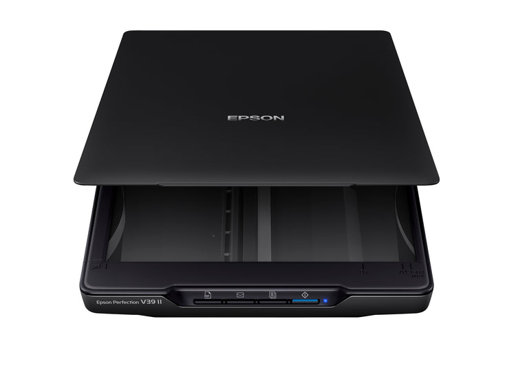 Make scanning simple with the affordable, compact and lightweight Epson Perfection V39 II. Featuring an optical resolution of 4800 dpi, this easy-to-use photo scanner delivers amazing clarity and detail at a great value. With the included Epson ScanSmart software, you can scan photos, artwork, illustrations, books, documents and more to cloud storage services as well as stitch together oversized images. Moreover, if your photos have faded, you can bring back the color in one click with Easy Photo Fix technology. The V39 II delivers high-quality letter-sized scans in as fast as 10 seconds. It also includes convenient one-touch scanning with easy-to-use buttons, so you can scan directly to PDF or email with just the touch of a button. In addition, you can create editable Microsoft Word, Excel and PowerPoint files using optical character recognition (OCR) software. The V39 II is USB powered for portability, includes a built-in kickstand for space-saving vertical placement and storage, and features a high-rise, removable lid to accommodate bulky items such as books and photo albums. Meet the nexus of stunning image quality and great value with the Epson Perfection V39 II.