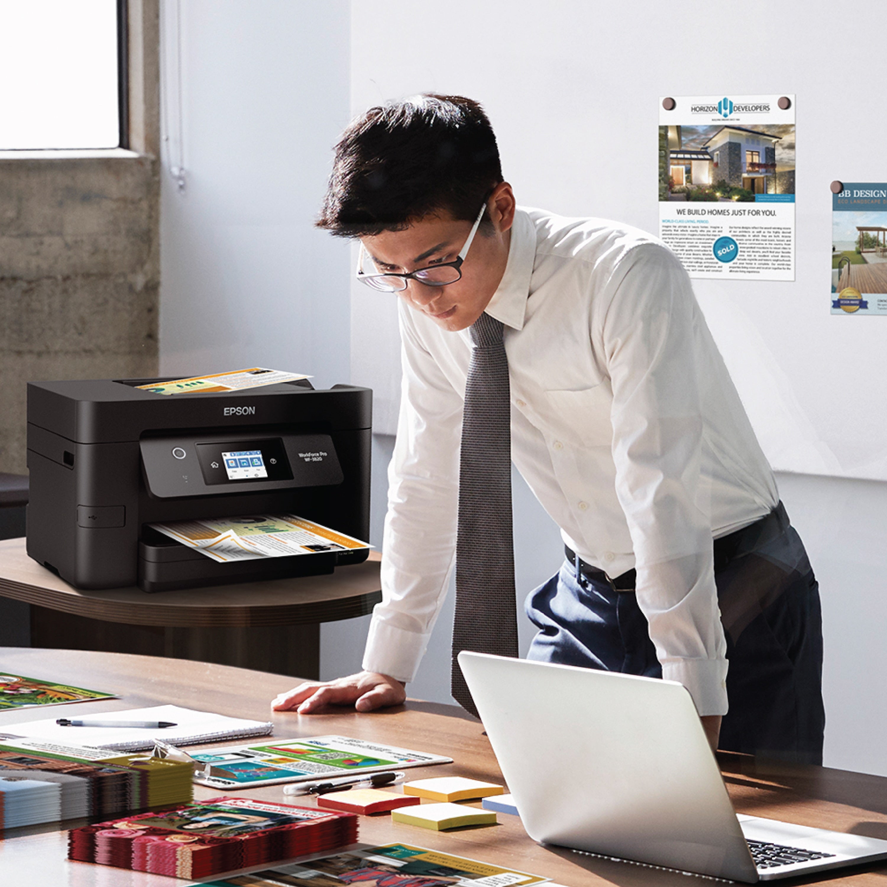 Bring a new level of productivity to your business with the ultra efficient WorkForce Pro WF-3820 all-in-one printer. Designed for high-volume print environments, the WF-3820 delivers precise, professional-quality prints at fast speeds up to 21 (black)/11 (color) ISO ppm using vibrant DURABrite Ultra instant-dry pigment inks. A breakthrough in business printing, the WF-3820 features Epson’s innovative PrecisionCore Heat-Free Technology designed for enhanced reliability with minimal downtime. Built with convenience in mind, the WF-3820 offers a variety of user-friendly features to support easy, streamlined printing for small workgroups, including auto 2-sided printing, a large, 250-sheet paper capacity, built-in wireless and a 2.7" color touchscreen for quick navigation and control.