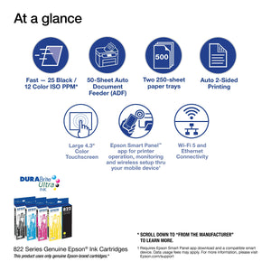 - Easy to use — 4.3" color touchscreen for quick navigation and control, plus all-new Epson Smart Panel App for enhanced connectivity and productivity from your mobile device