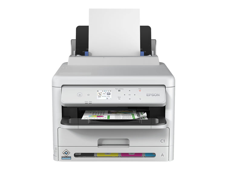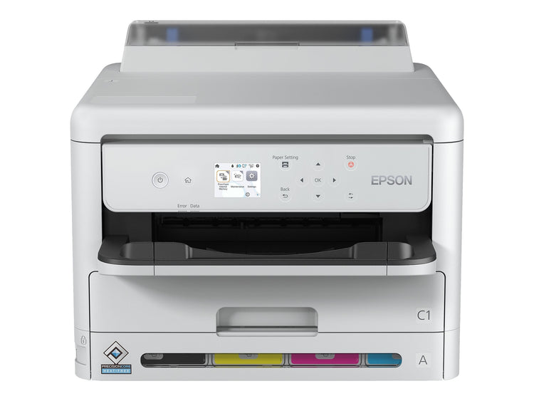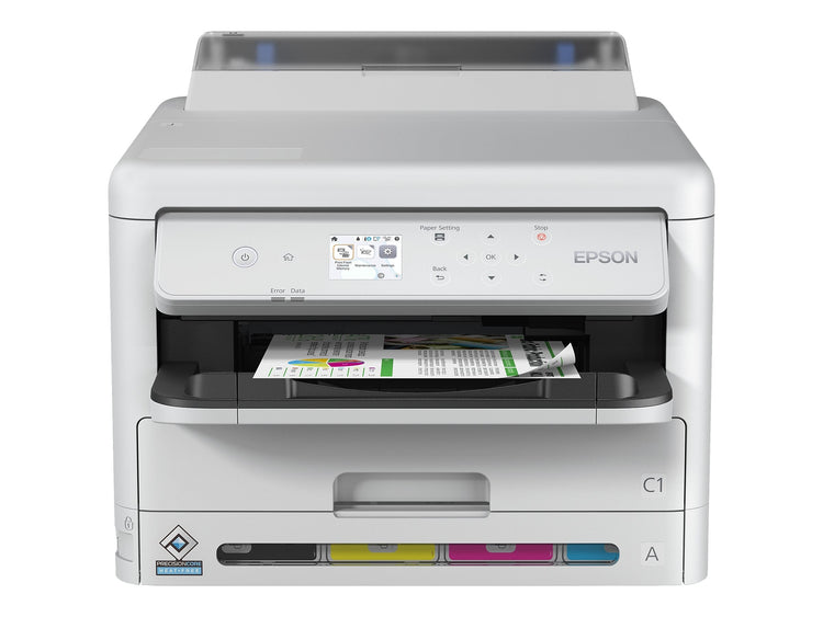 Powered by revolutionary PrecisionCore Heat-Free technology, the WorkForce Pro WF-C5390 color printer features the next generation of inkjet printing technology. This workhorse also includes an innovative Replaceable Ink Pack System to help minimize your interventions - you can print up to 5,000 ISO pages with replacement ink packs, reducing ink replacement frequency. And you save on printing-up to 25 percent on replacement ink vs. color laser tone. With the lowest power consumption in its class, the WF-C5390 delivers powerful productivity, with a recommended monthly page volume (MPV) of 5,000 pages, brisk print speeds of 25 ISO ppm (black/color), and a fast first page out with virtually no warmup time. In addition, it features a bright 2.4" color LCD and a large 1,830-sheet paper handling capacity (with three optional trays). And with DURABrite Ultra Ink, the WF-C5390 delivers professional-quality results on a wide variety of media - razor-sharp text and brilliant colors to make your business look its best. Ideal for busy workgroups, the printer includes wireless and Ethernet connectivity, PCL4 and PostScript support, remote data collection and seamless integration with enterprise applications.