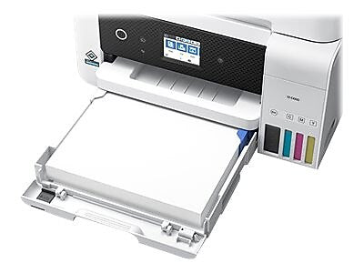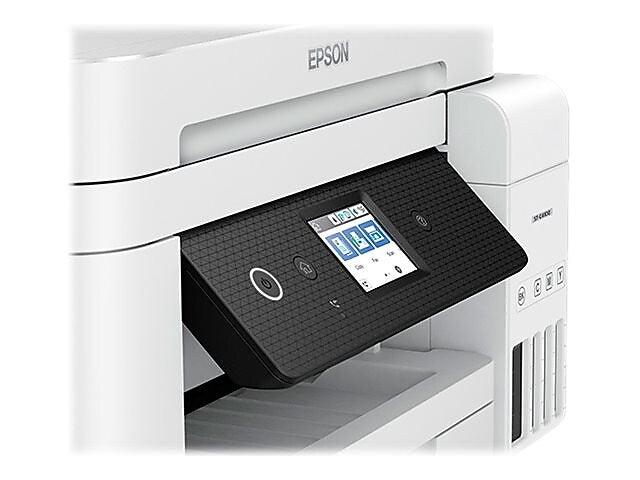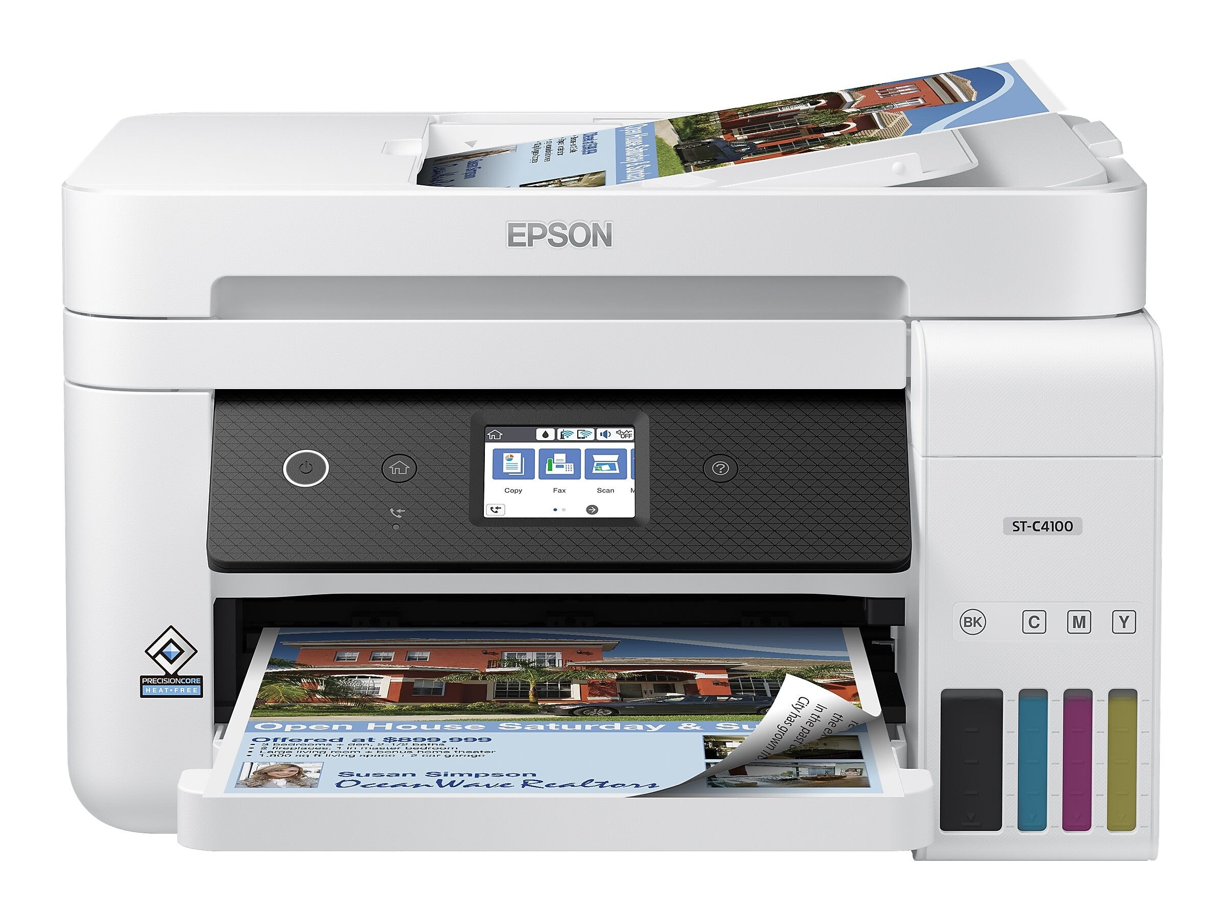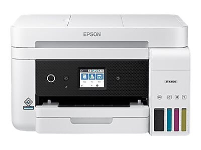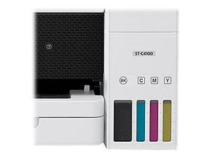 The WorkForce ST-C4100 Supertank Color MFP, powered by PrecisionCore Heat-Free Technology, makes your business look its best when it means the most. Offering remarkable productivity for small work teams, it features revolutionary printing with easy-to-fill, supersized ink tanks. And, it includes up to 2 years of ink in the box1 - enough to print up to 14,000 pages black/11,200 color2. Your CFO will appreciate the fact you save up to 90 percent with low-cost replacement ink bottles vs. ink cartridges, equivalent to about 90 individual ink cartridges4. The WorkForce ST-C4100 also offers a high-capacity 250-sheet paper tray, fax, 2.4" color touchscreen, 30-sheet ADF, fast auto 2-sided printing and convenient wired and wireless networking. Plus, the WorkForce ST-C4100 is compatible with the Epson Smart Panel app5, a powerful tool that makes it easy to setup, monitor, print, scan, order supplies and more right from your hand-held device. And, its 90-degree power cord means the ST-C4100 can easily fit in tight spaces.