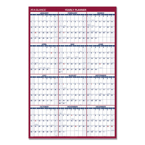 Get the planning versatility that busy professionals need with this reversible wall-calendar. Hang the calendar the way that best meets your needs or track important business events on one side and personal events on the other. Both sides of the calendar display a full 12-months, with one side laid out vertically in four rows of three months and the other side laid out horizontally in three rows of four months. Bold, larger than average print on a contrasting background makes both sides easy to read. And AT-A-GLANCE® is well aware that plans change, so this calendar's made to keep up with the most hectic scheduling issues. Simply note your important information with the included wet-erase marker and wipe the calendar clean with a damp cloth to fully take advantage of its write-on/wipe-off design.