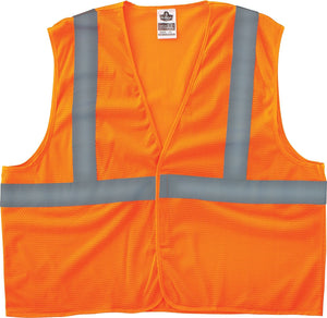 Ergodyne® GloWear® 8205HL Large/XL orange class 2 Hi-vis super econo vest with 2" reflective tape is made of 3.3 oz polyester mesh for longer life. Vest with hook and loop closure is used by railway workers, utility crew and baggage handlers.