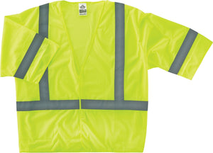 Ergodyne® GloWear® 8310HL 2XL/3XL lime class 3 Hi-vis economy vest is made of 3.3 oz polyester mesh for longer life. Vest with hook and loop closure includes an inside pocket with 2" reflective tape for more comfort.