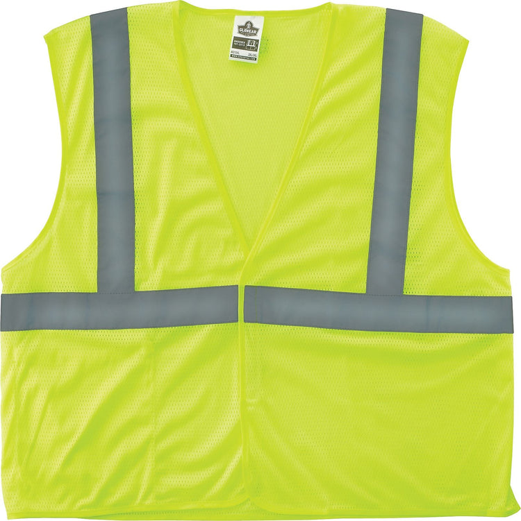 Ergodyne® GloWear® 8210HL 4XL/5XL lime class 2 Hi-vis economy vest with 2" reflective tape is made of 3.3 oz polyester mesh for longer life. Vest with hook and loop closure is used by railway workers, utility crew and baggage handlers.