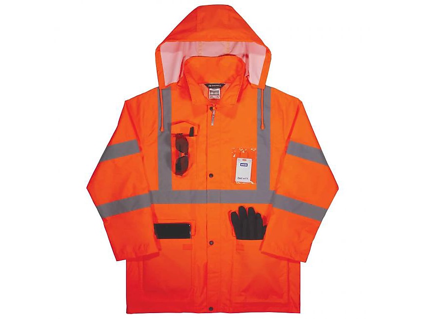 View Details- Lightweight reflective rain jacket easily fits over workwear without sacrificing mobility