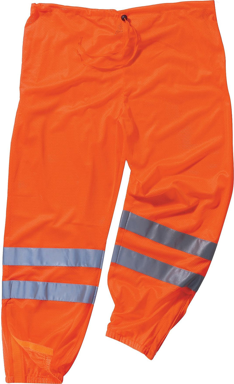 Ergodyne® GloWear® 8910 Small/medium orange class E Hi-vis pant having 2" reflective tape is made of 3.3 oz polyester mesh for longer life. Pant with drawstring waist includes wide leg openings for more comfort and is used by utility crewmembers.