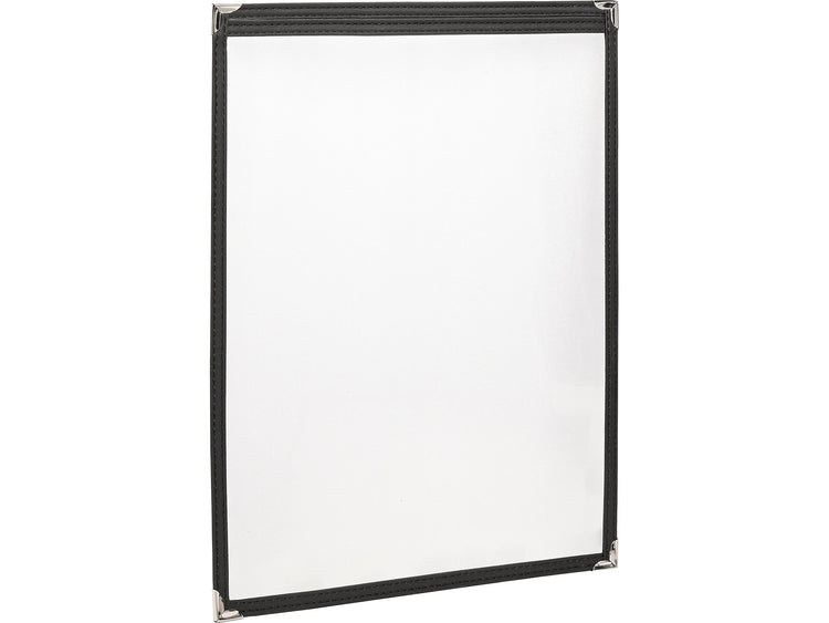 This Excello Global Products menu holder is perfect for use in restaurants, cafes, bars, and more. An anti-glare viewing window material protects the item on display from stains and tears.