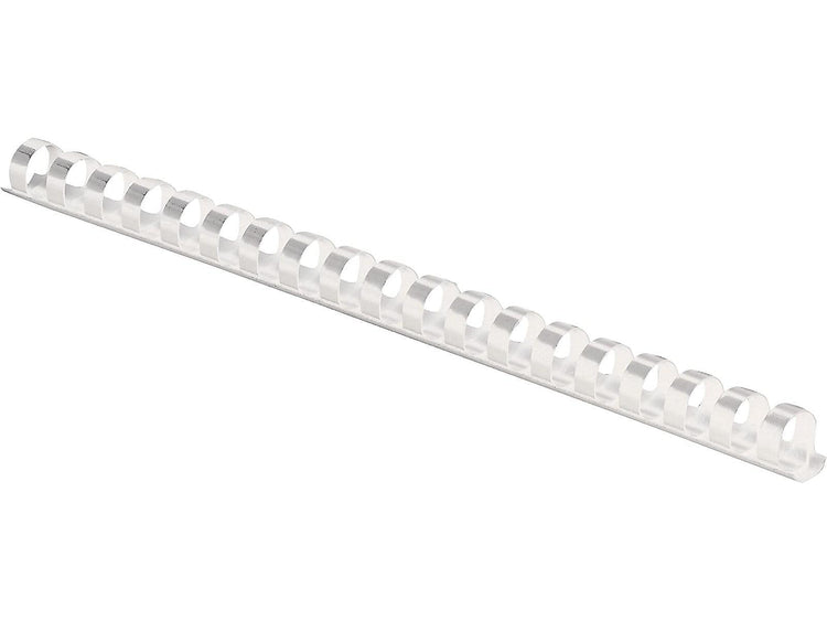 Gather documents together with these plastic comb bindings. The white color brings a professional look to your booklets, while the durable plastic construction stands up to frequent handling. Each comb works with Fellowes 19-ring binding machines for convenient compatibility. With 100 pieces in each pack, these Fellowes comb bindings provide an ample supply to prepare manuals and presentations for your next meeting or event.