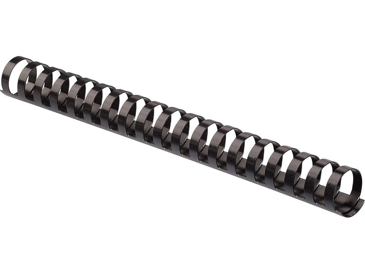 Give booklets, manuals, and reports a finished look with these plastic comb bindings. The 200-sheet capacity ensures even thick stacks of paper are easy to flip through, and the black color lends a professional appearance. Each binding is crafted from sturdy plastic for long-lasting use. Compatible with various 19-ring binding systems, these Fellowes comb bindings are easy to use.