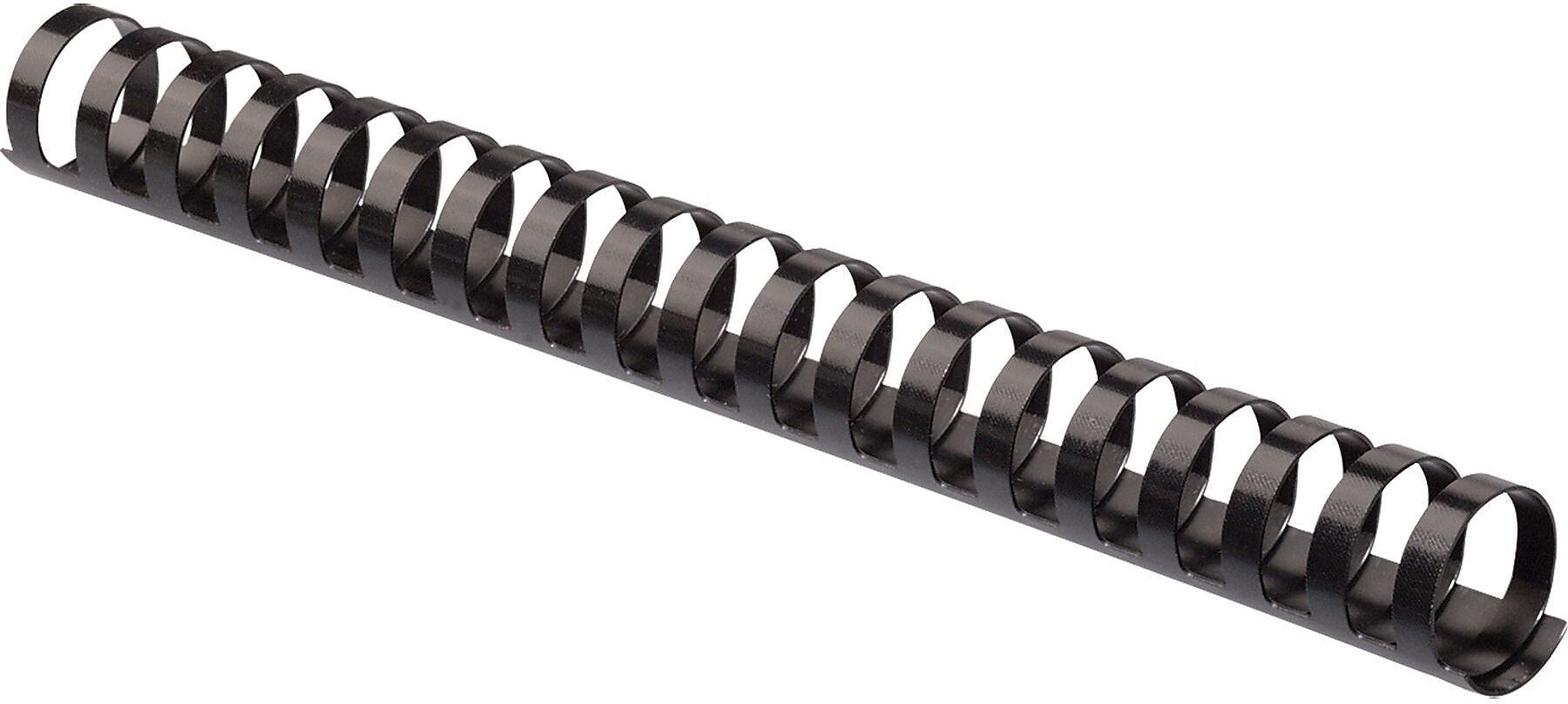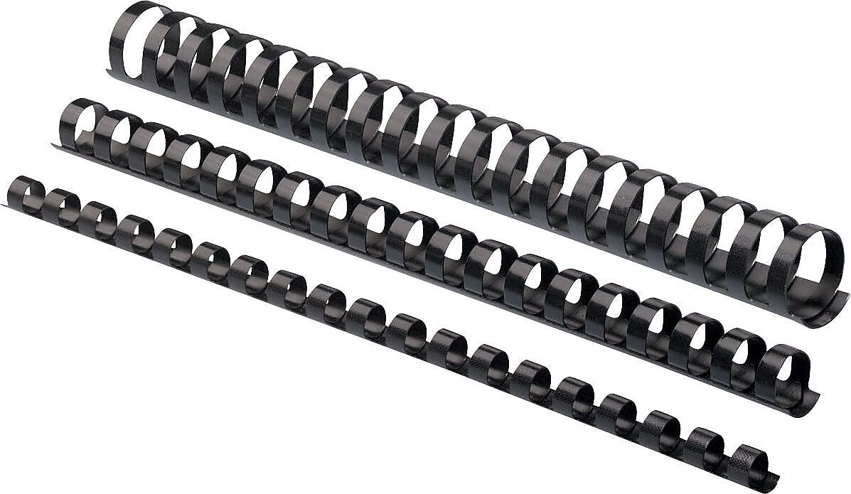 Fellowes® Plastic comb binding spines in black color have 3/4" diameter and provide a custom look to your reports as well as documents. Spines have a capacity to hold 150 sheets with its 19-ring comb binding system, sold as 25 per pack.