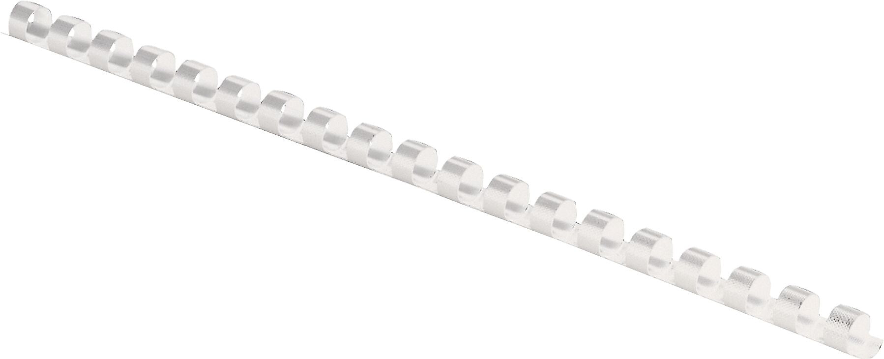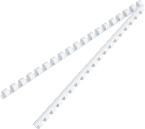 Fellowes® Plastic comb binding spines in white color have 5/16" diameter and provide a custom look to your reports as well as documents. Spines have a capacity to hold 40 sheets with its 19-ring comb binding system, sold as 100 per pack.