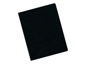Give documents a sleek appearance with the sophisticated grain texture and black color of these presentation covers. Made with 65-pound stock, these covers are durable and help prevent contents from being damaged. These Fellowes Expressions presentation covers have an oversized design for full-coverage of letter-size papers and can be used with almost any non-thermal binding system thanks to the un-punched format.