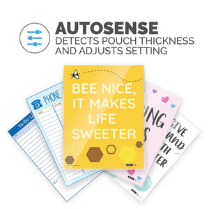 - AutoSense system detects pouch thickness and self-adjusts to the optimal laminating setting