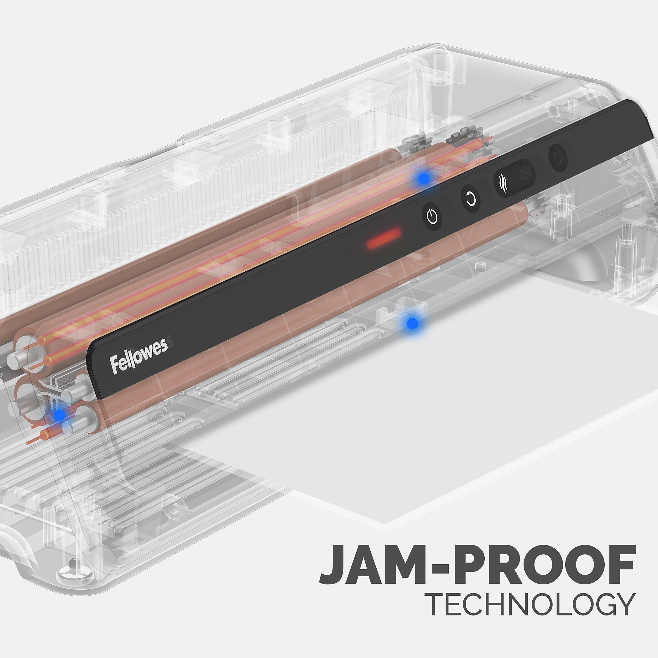 - 100% jam-proof laminating system: advanced pouch tracking technology with auto-reverse, light guides, and large, foldable entry and exit trays for perfect pouch guidance from start to finish