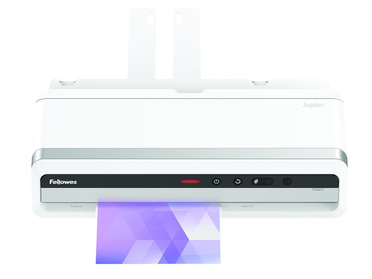 The Fellowes Jupiter 125 white thermal and cold laminator with pro settings deliver user flexibility for perfect results every time. Rapid laminating speed up to 55" per minute with faster speeds across all mil settings. Laminates hot pouches up to 10 mil thick and cold pouches.